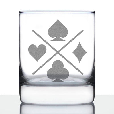 Card Suits Whiskey Rocks Glass - Poker Players Gifts & Decor