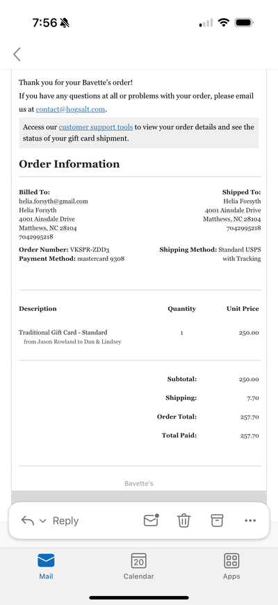 Hogsalt/Bavette’s Gift Card- Extra Card on Hand