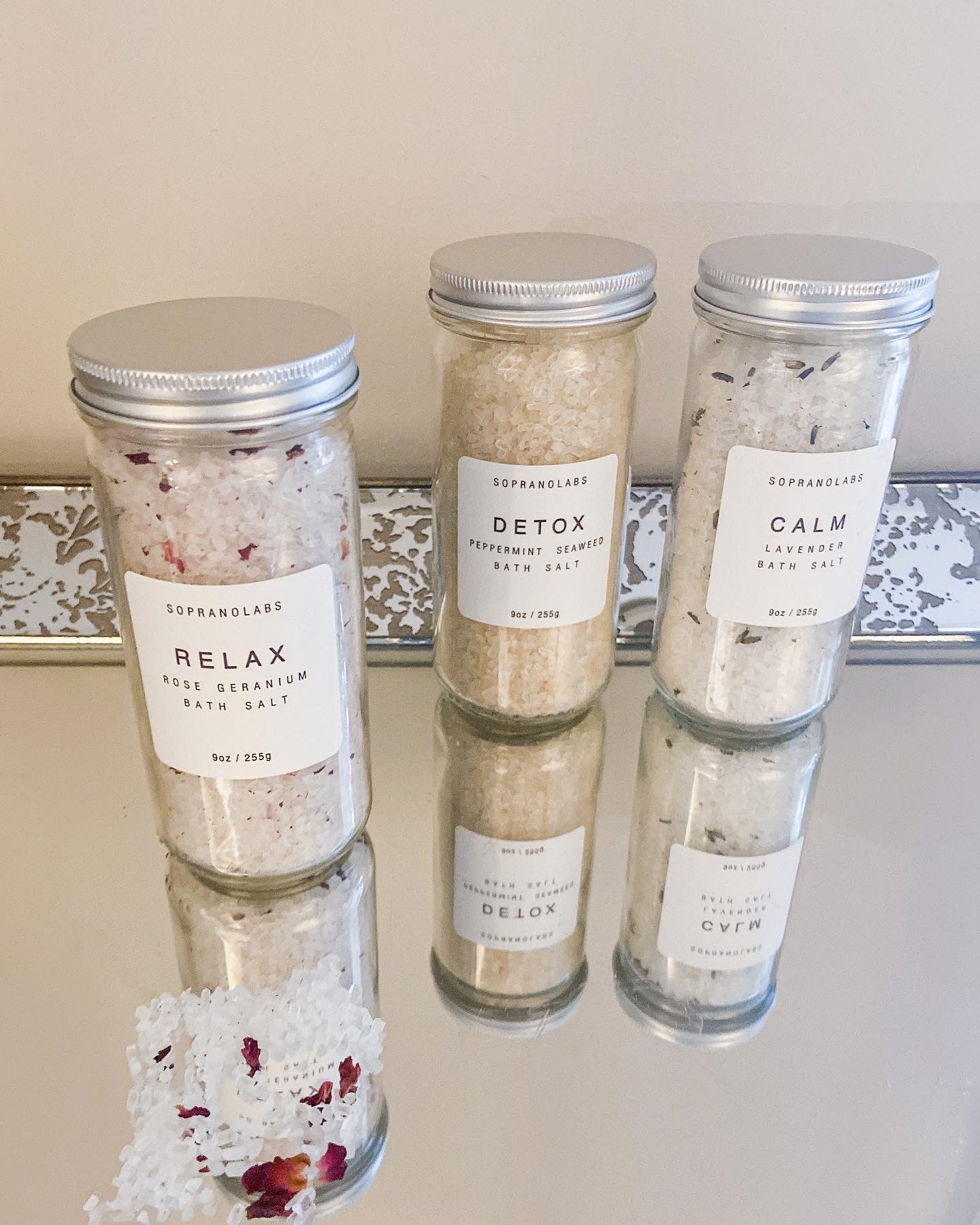 Detox Bath Salt is a luxurious bath soak made with four salt varieties and seaweed extract. The blend of Eucalyptus, Peppermint and Spearmint Essential Oils uplifts mind and detoxes body. Epsom salt aids in calming muscles and eliminating toxins.