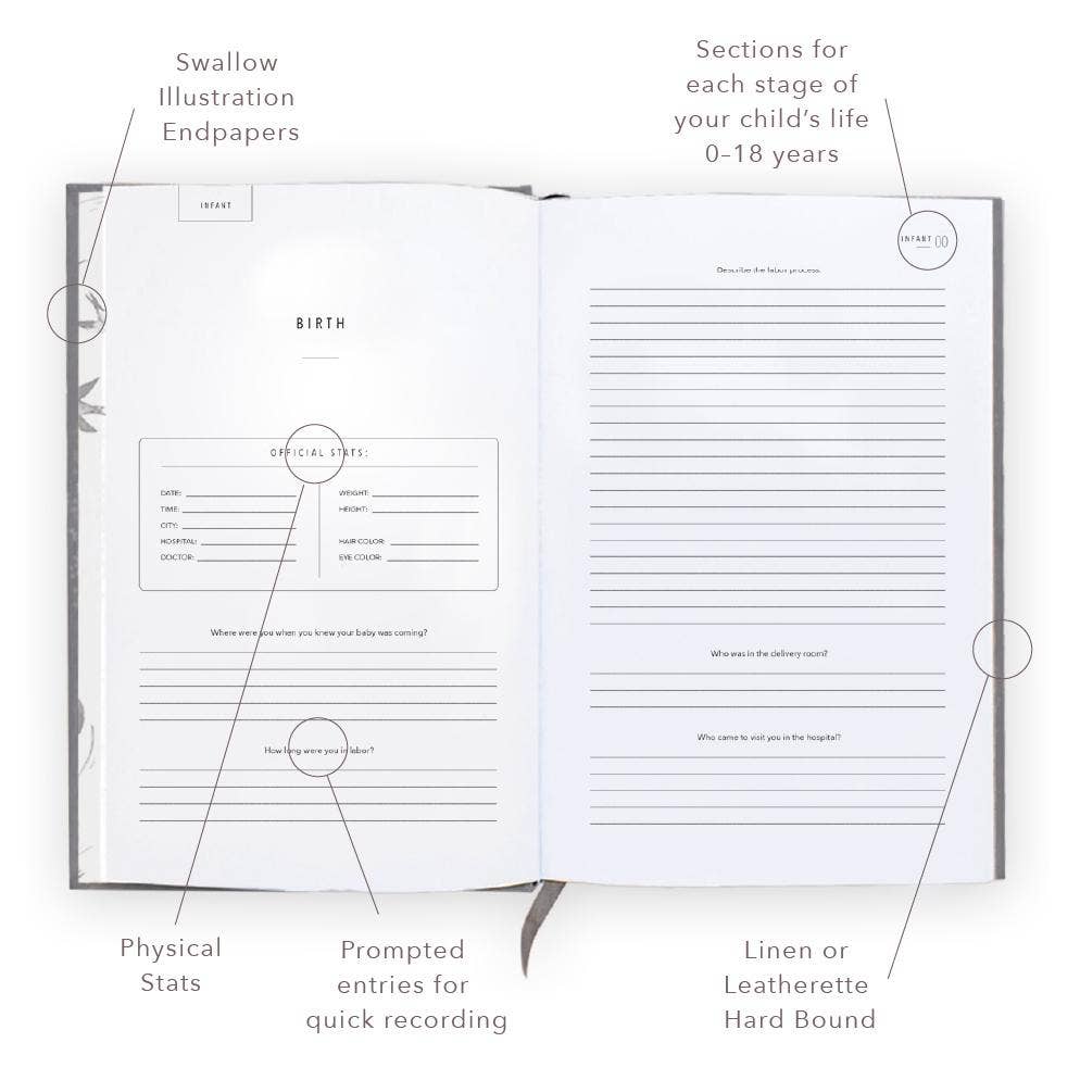 - Low commitment, just one hour per year People also searching for: baby memory book, parenting journal, childhood milestone tracker, family keepsake journal, growth and development diary