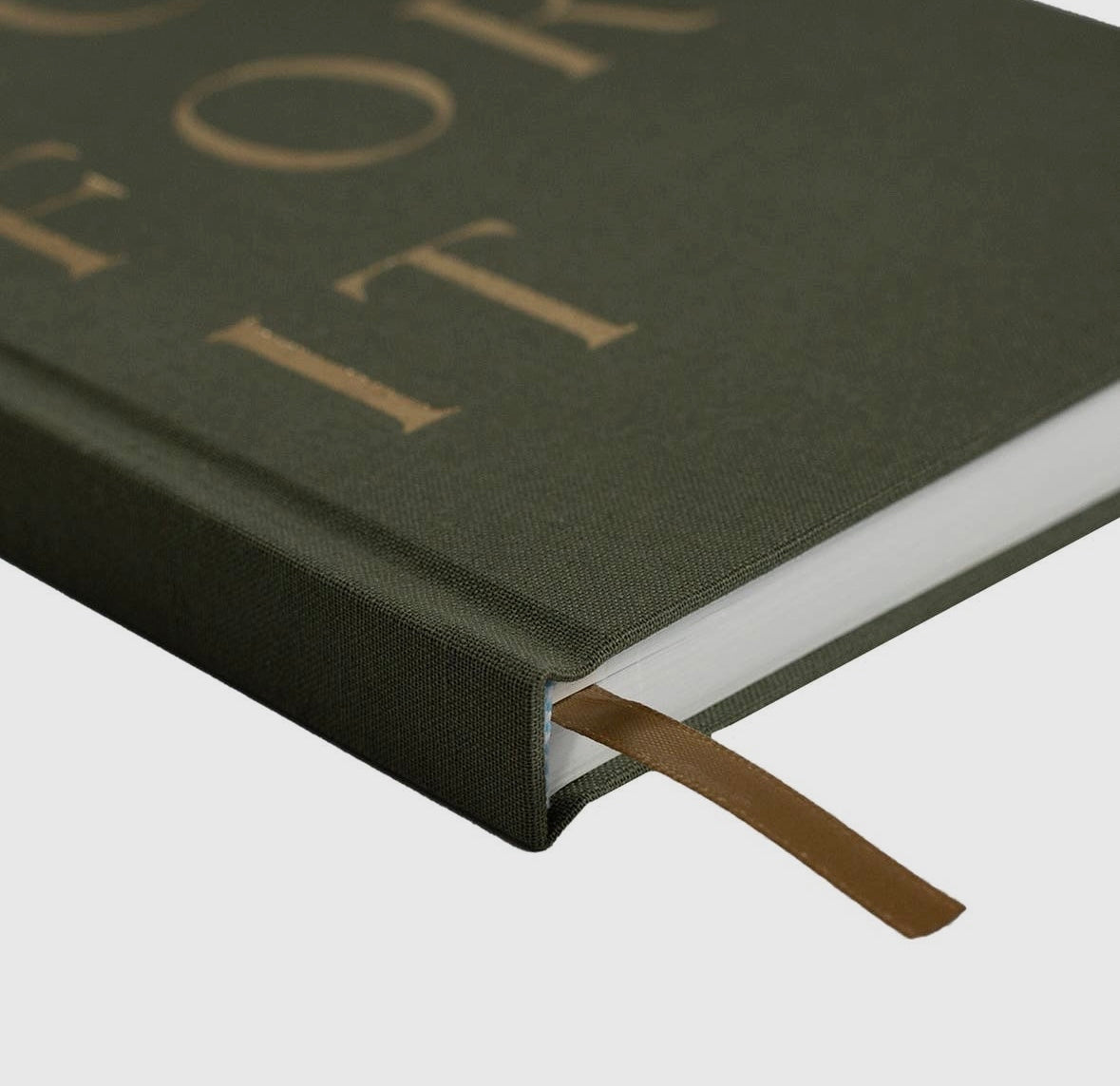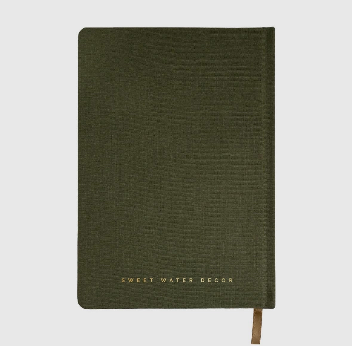 Crafted with a textured olive fabric cover and elegant gold foil lettering, this journal makes the perfect addition to your desk, bedside table, or tote bag. Its smooth, uncoated lined pages and gold ribbon bookmark make writing effortless and enjoyable, turning your journaling moments into a ritual of calm and clarity.