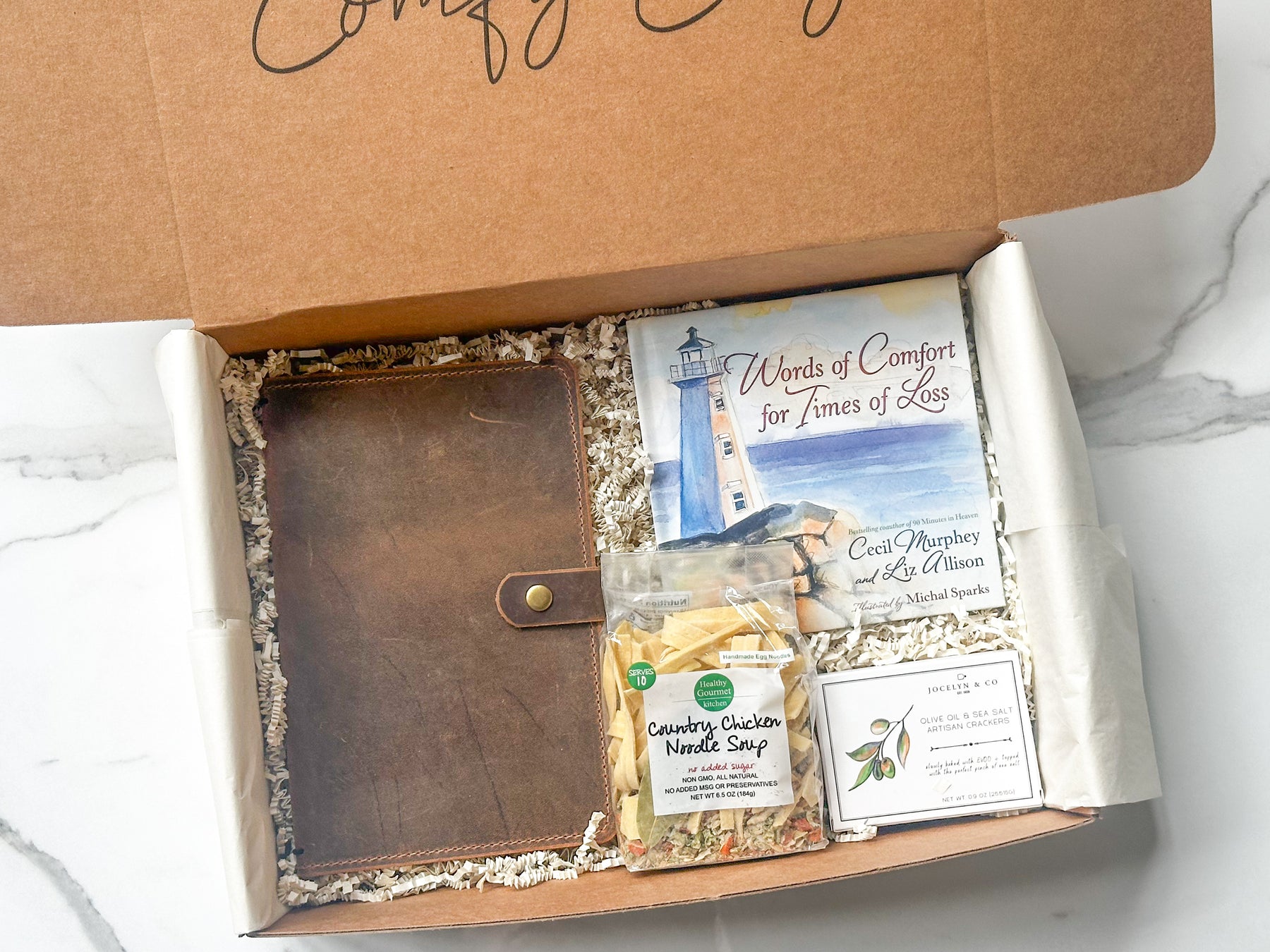 This care package was created with empathy and balance — combining practical nourishment, reflective writing, and emotional support in one meaningful box. Every item is hand-packed with care in our signature Curated Comforts Co. packaging, ensuring an elegant and comforting unboxing experience.
