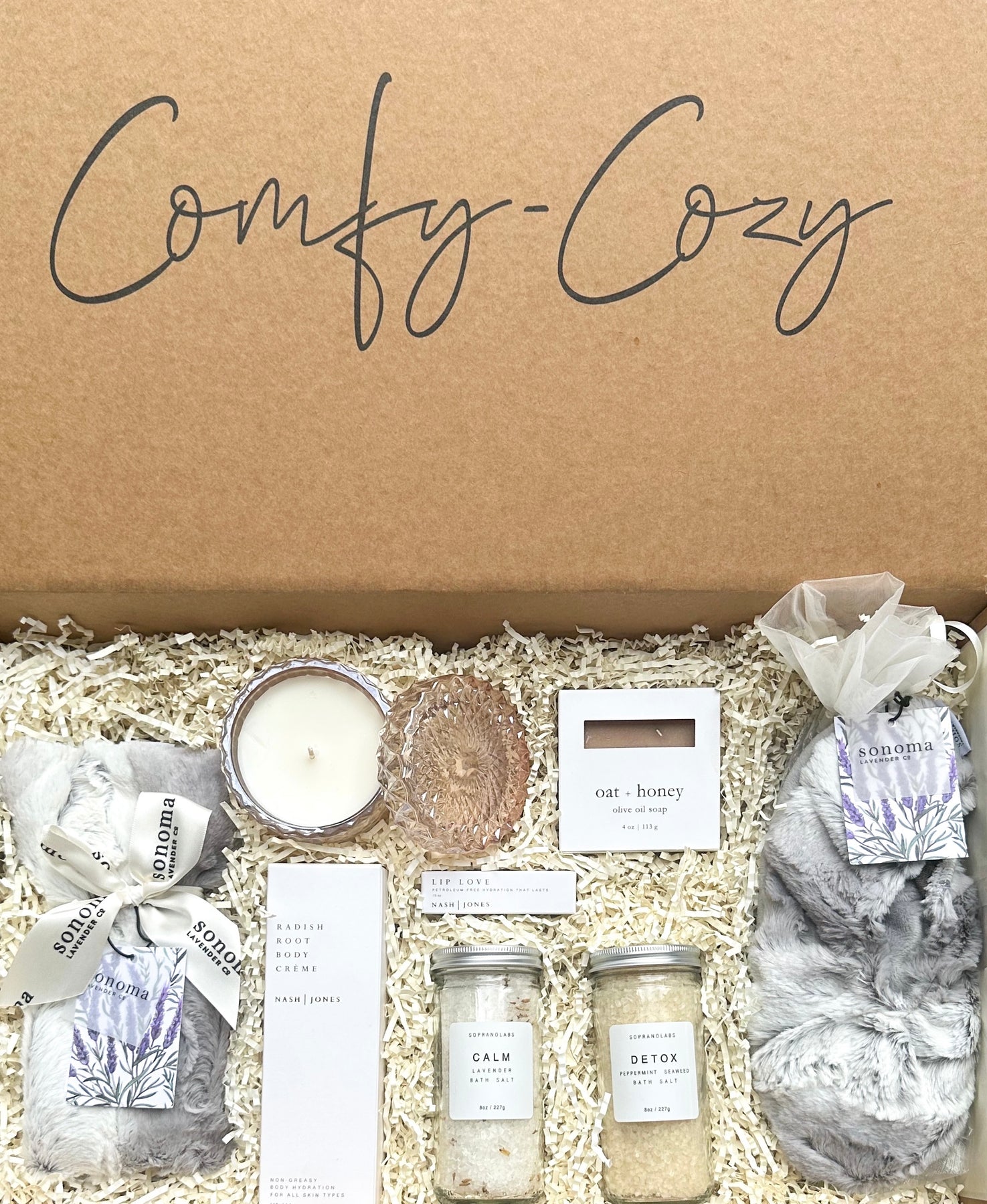At Comfy-Cozy, we take the art of gift-giving seriously, which is why all of our gift sets are carefully curated and packaged with love. Every set comes delivered or shipped in a beautiful gift box, and you have the option to add a personalized message at checkout by simply checking the "This is a gift" box in your cart.