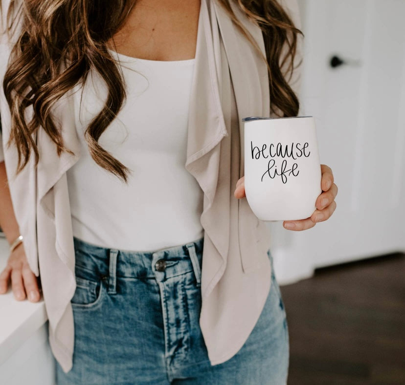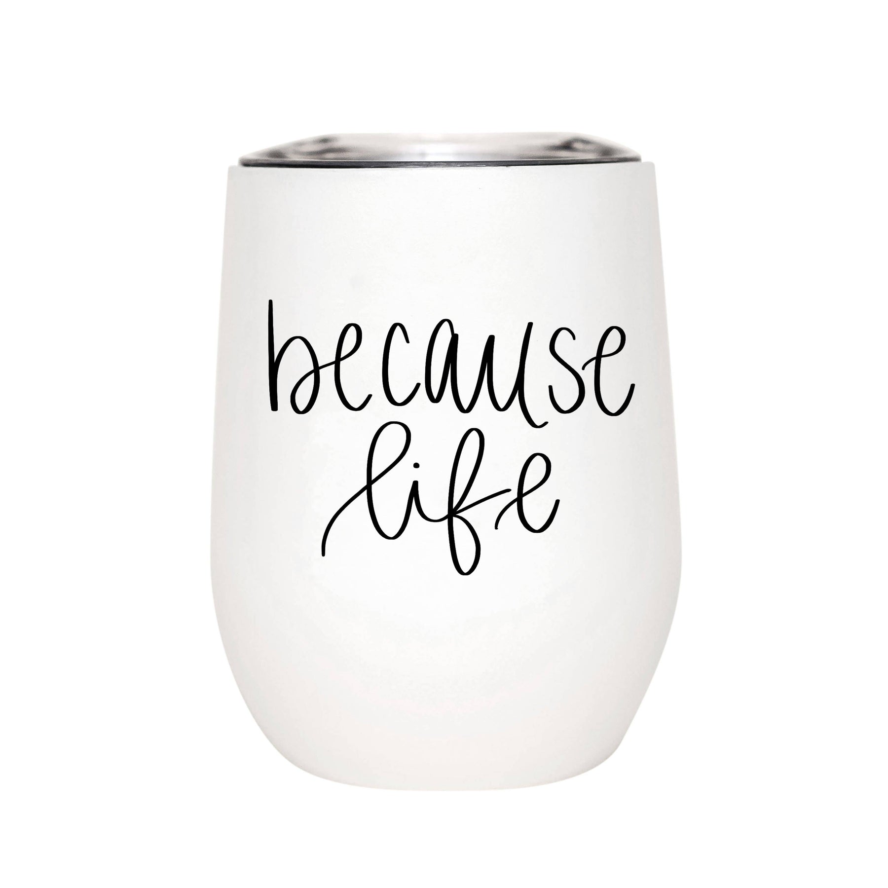 Because Life - Black and White Metal Wine Tumbler - 12 oz