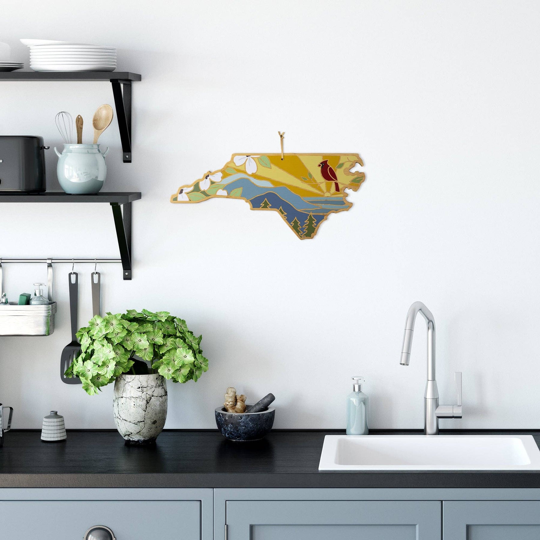 Celebrate the natural beauty of your state with state-shaped boards featuring gorgeous landscape art by Summer Stokes. The colorful UV printed artwork creates a fun, conversation-starting charcuterie board.