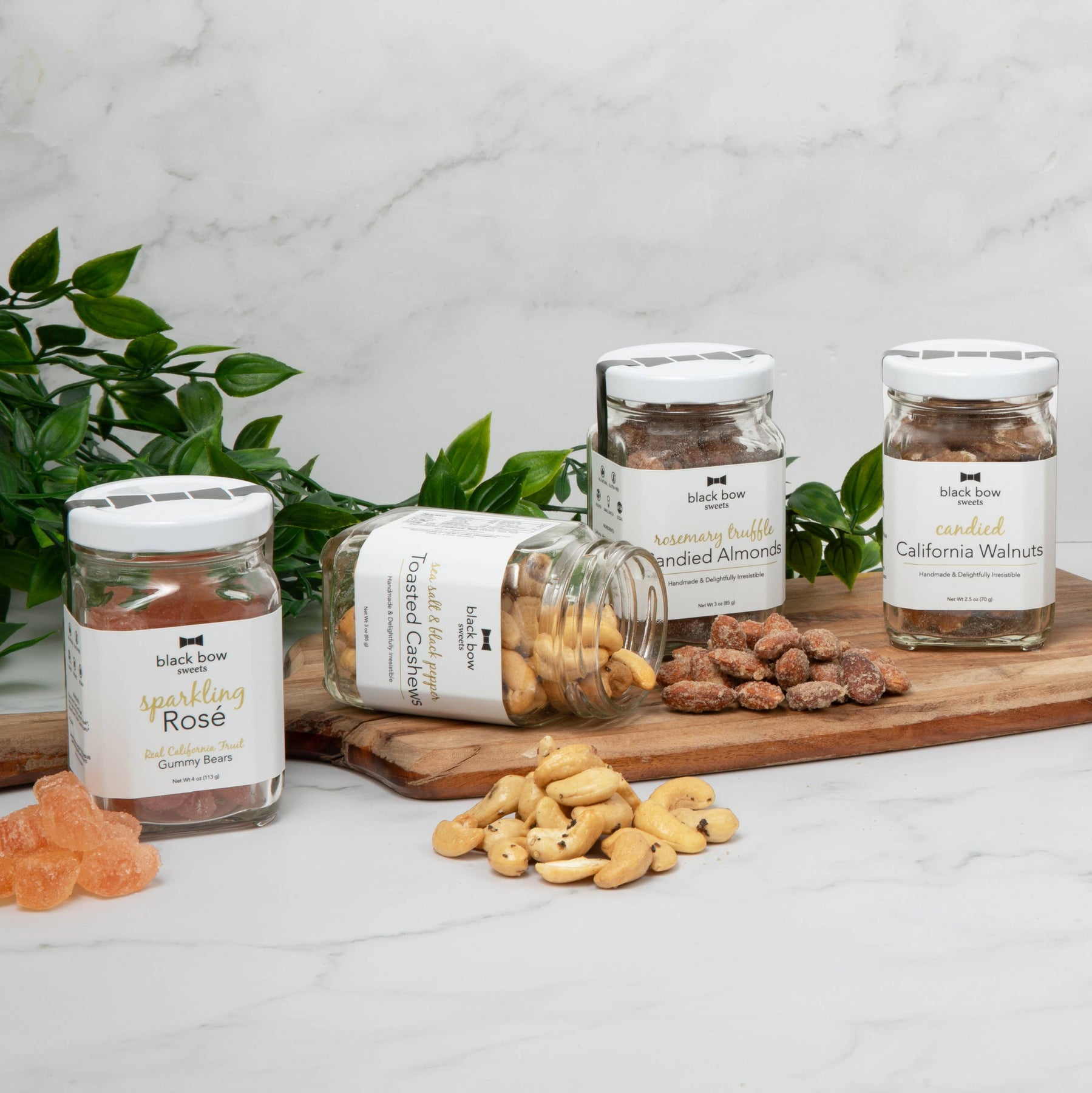 keywords: Nuts, Savory Nuts, Cashews, Salted Cashews, Salt, Pepper, Gourmet Nuts, Gourmet Cashews, Savory, Handmade, Artisan, Small Batch, Made in the USA, Woman Owned, Fall, Holiday, Christmas, Stocking Stuffer, Christmas Gifts, Gift Basket, Gift Basket Item, Tasting Room, Winery, Snack, Hotel, Mini Bar