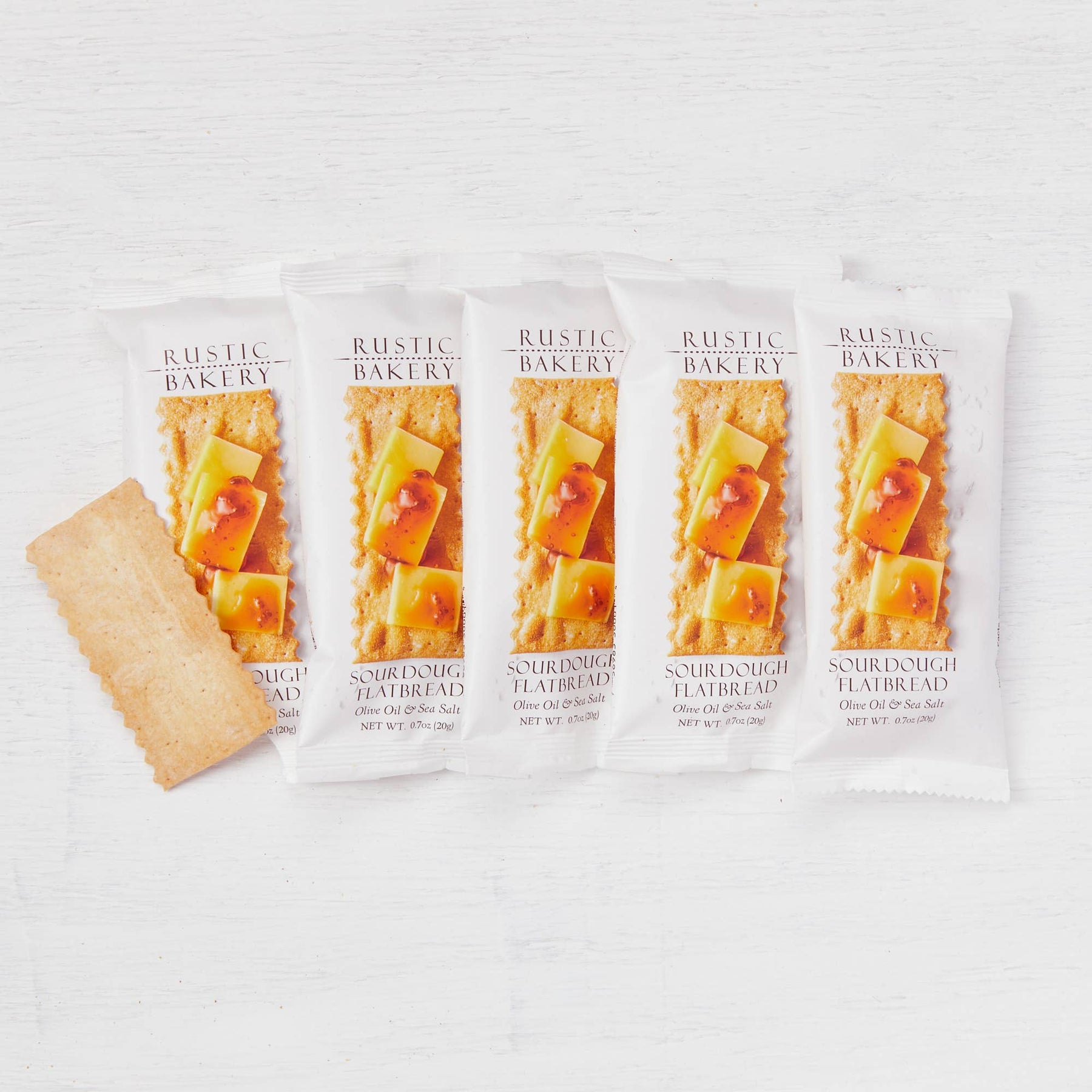 .7 oz Light and flaky, made with extra virgin olive oil and grey sea salt from France. There are appoximately 4 flatbread per each individual packet