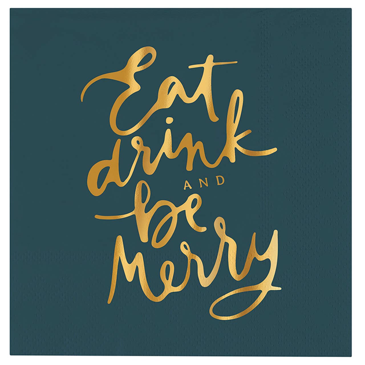 Ceramic Napkin Tray + Napkins - Eat Drink and be Merry: Paper/Ceramic/Velvet Ribbon
