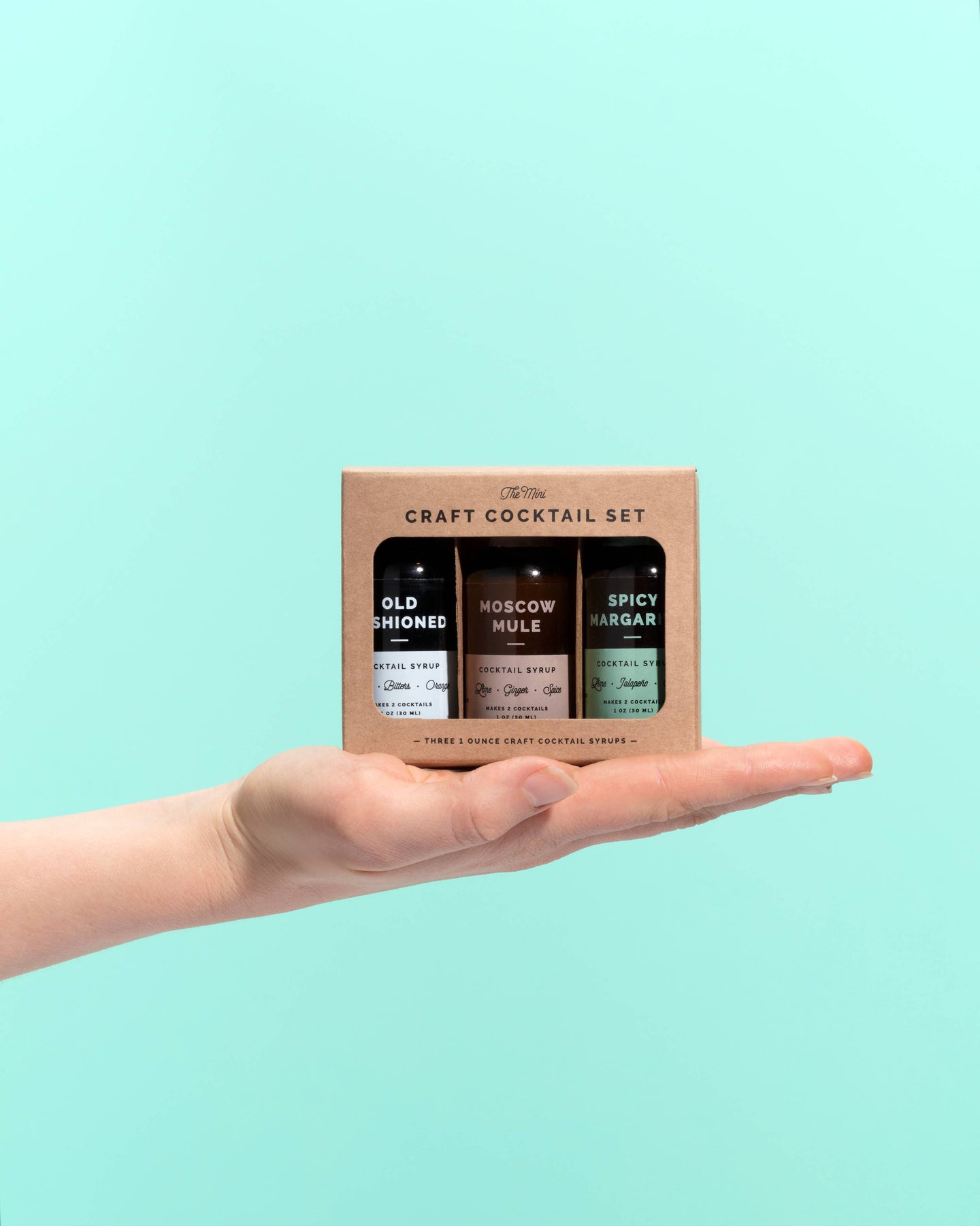 Includes: Old Fashioned Cocktail Syrup (1 fl oz) Moscow Mule Cocktail Syrup (1 fl oz) Spicy Margarita Cocktail Syrup (1 fl oz)