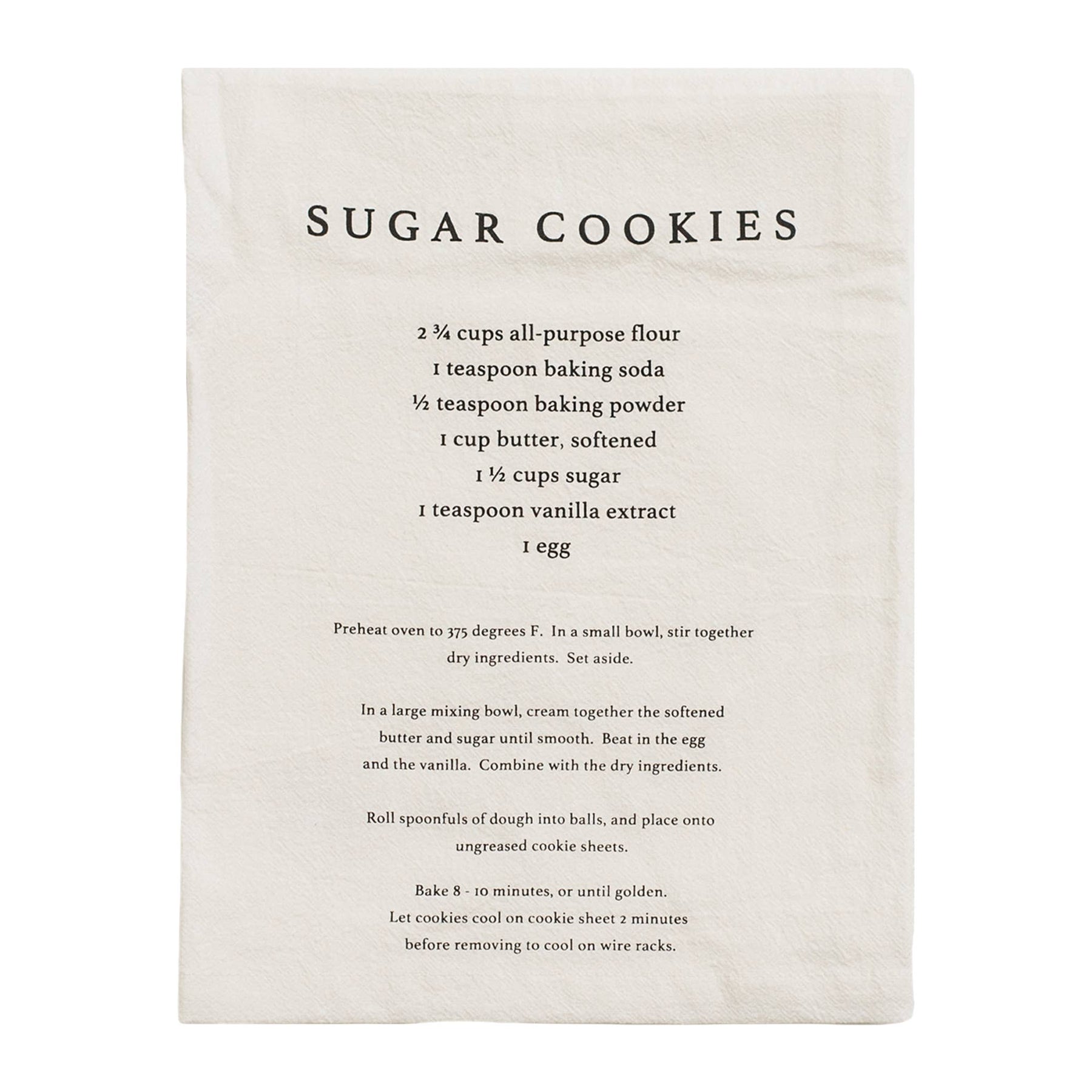 DETAILS: • Size: Approximately 25 x 28" • Details: Cream with Sugar Cookie Recipe • 100% Cotton • Features a Loop to Hang • Style No. HT011 CARE: • Machine Wash Cold + Tumble Dry Low Heat • Do Not Use Hot Iron, Fabric Softener, or Bleach • Do Not Dry Clean CATEGORIES: • Christmas, Holiday, Hostess Gift, Housewarming, Office Party, Winter, Gift Exchange, Secret Santa, White Elephant, Stocking Stuffer, Holiday Kitchen Decor, Christmas Kitchen Decor, Fall, Thanksgiving, Spring, Mothers Day, Kitchen, Boho, Farmhouse Decor, Spring Decor, Easter, Easter Decor, Tea Towel, Dish Cloth, Gifts, Insider Free Shipping Brands STYLE: • Vintage, Black and White, Modern, Simple, Farmhouse, Modern Farmhouse