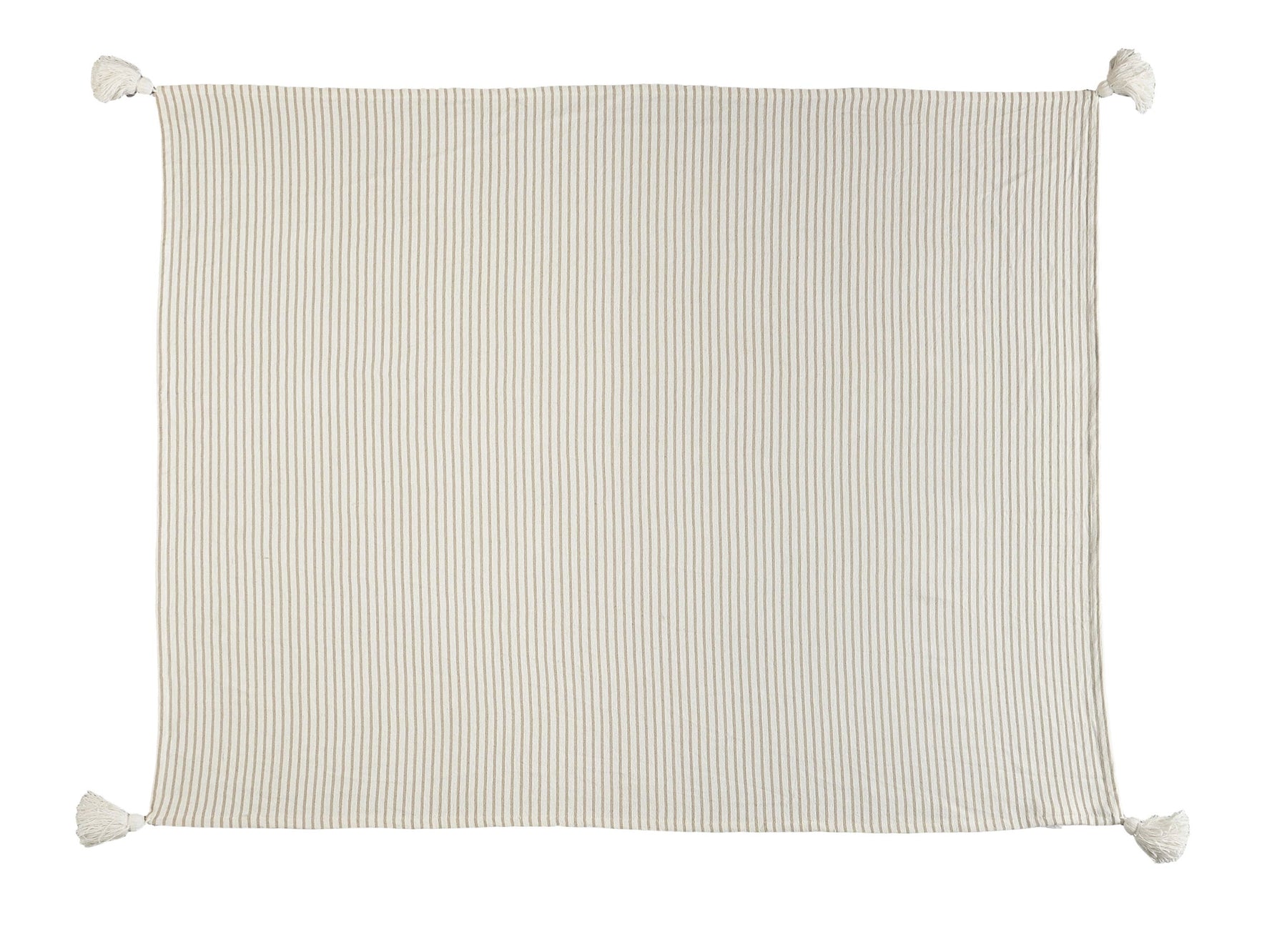 Striped Ivory and Beige Tasseled Throw Blanket: Ivory/Beige