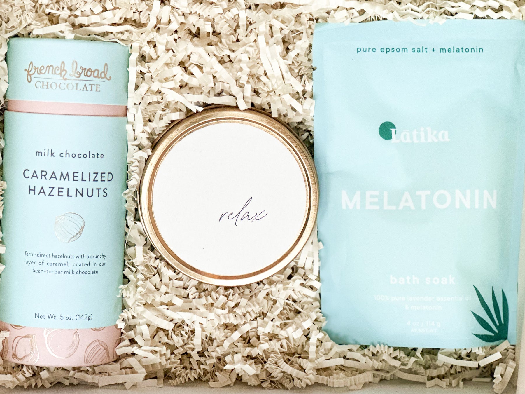 Treat yourself or a loved one to our Cozy Night In Gift Box – featuring organic chocolate-covered hazelnuts, a lavender soy candle, and melatonin bath soak. Perfect for self-care, relaxation, and restful sleep. Fast shipping from Comfy-Cozy.com