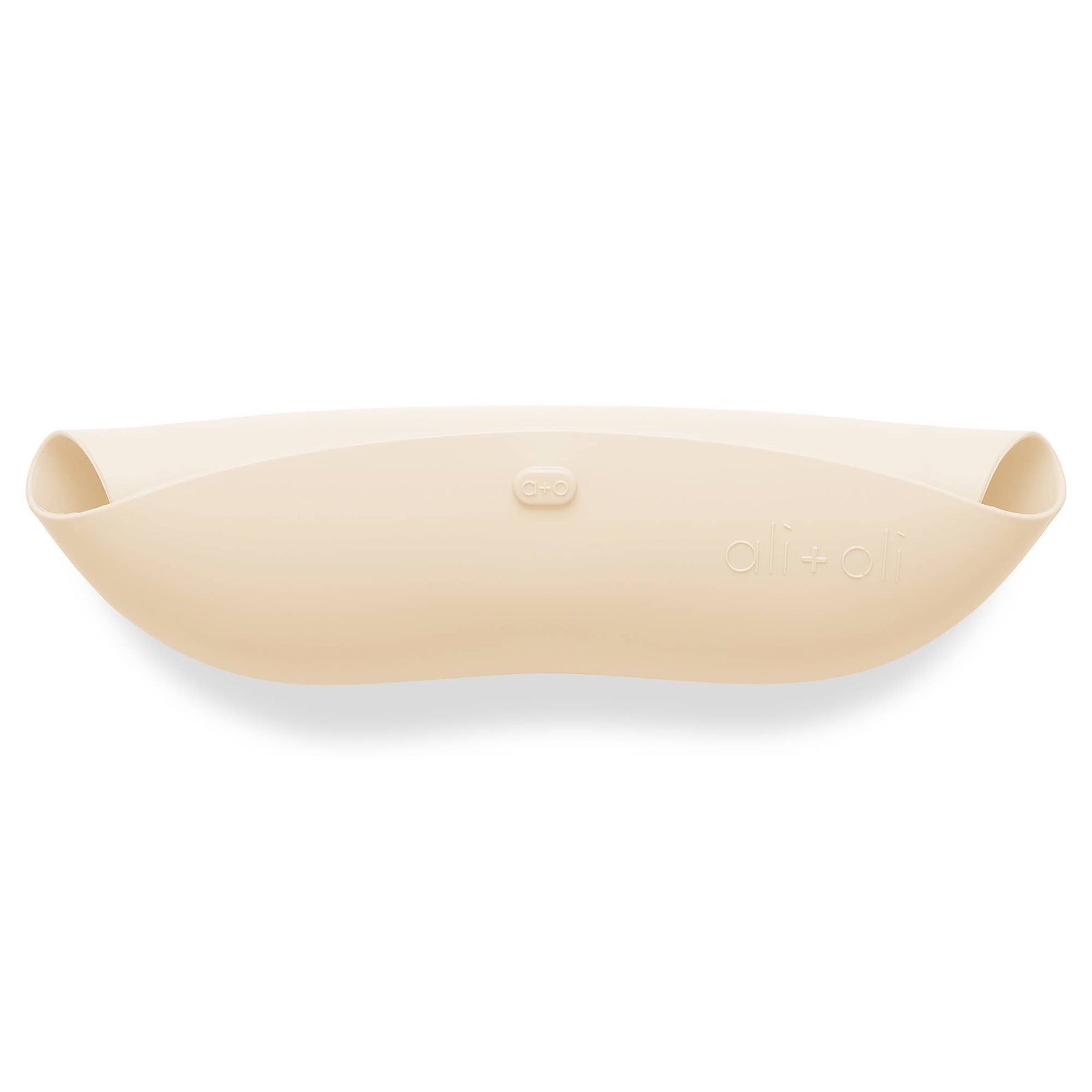 Roll-up & stay closed bib has the same features as a normal bib, but this one can be closed. This is great since it makes it easy to store at home and on the go in your diaper bag. The bucket of the bib serves as storage for utensils.